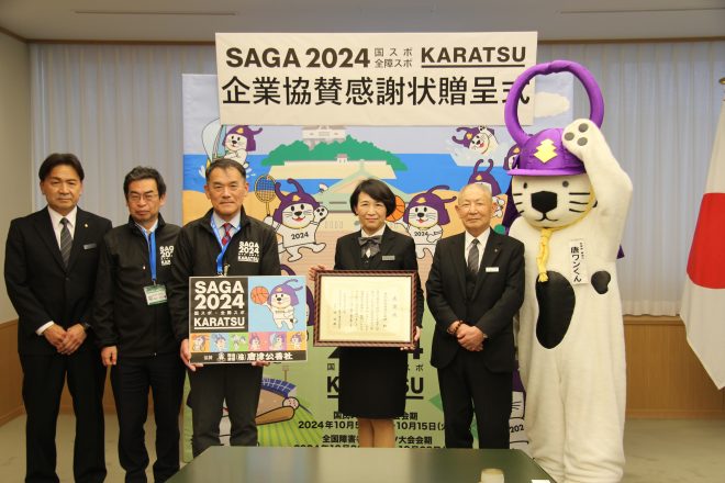 SAGA2024国スポ・全障スポ唐津市開催競技への協賛に対し唐津市より感謝状を贈呈されました。
